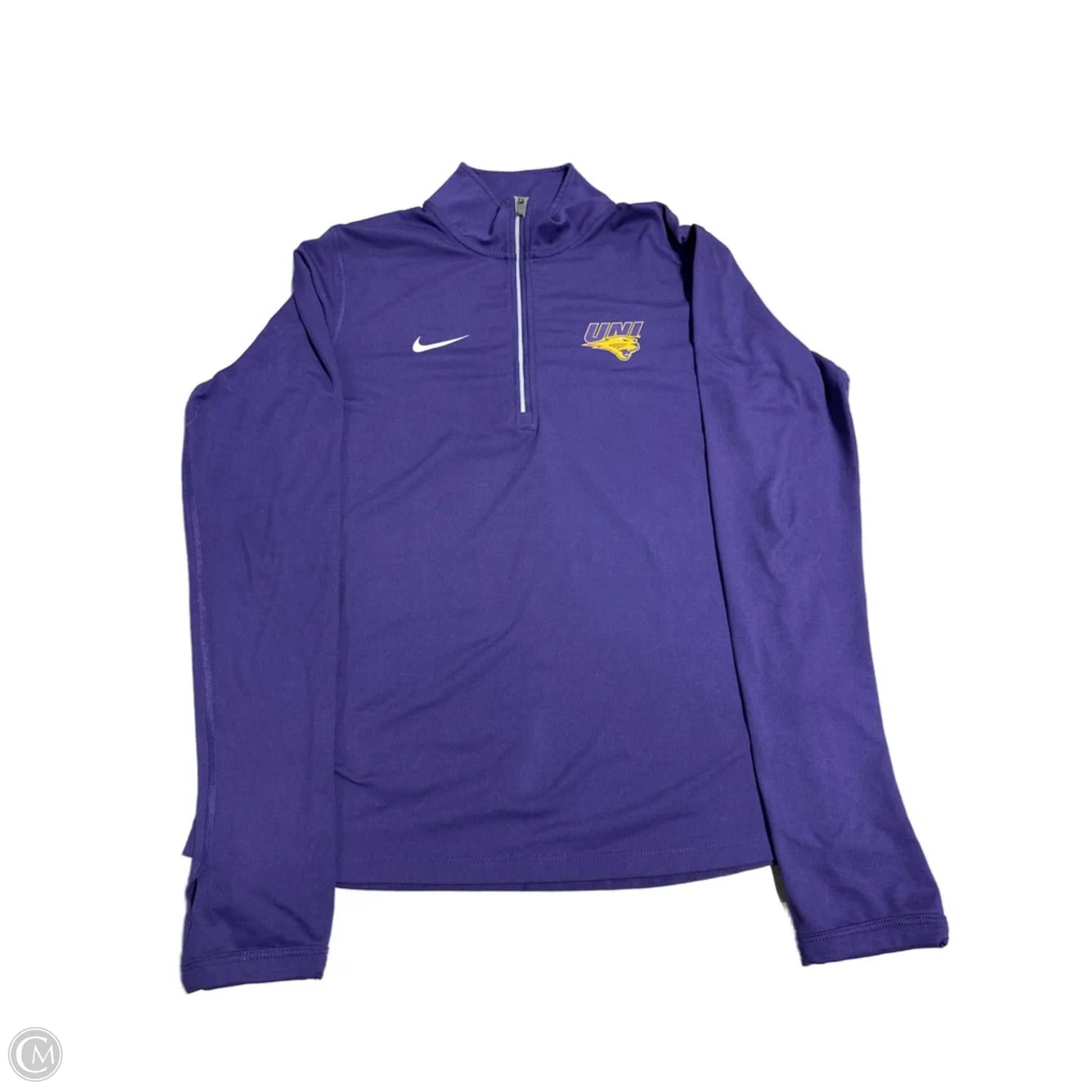 Athletic Top Long Sleeve Collar By Nike In Purple, Size: M