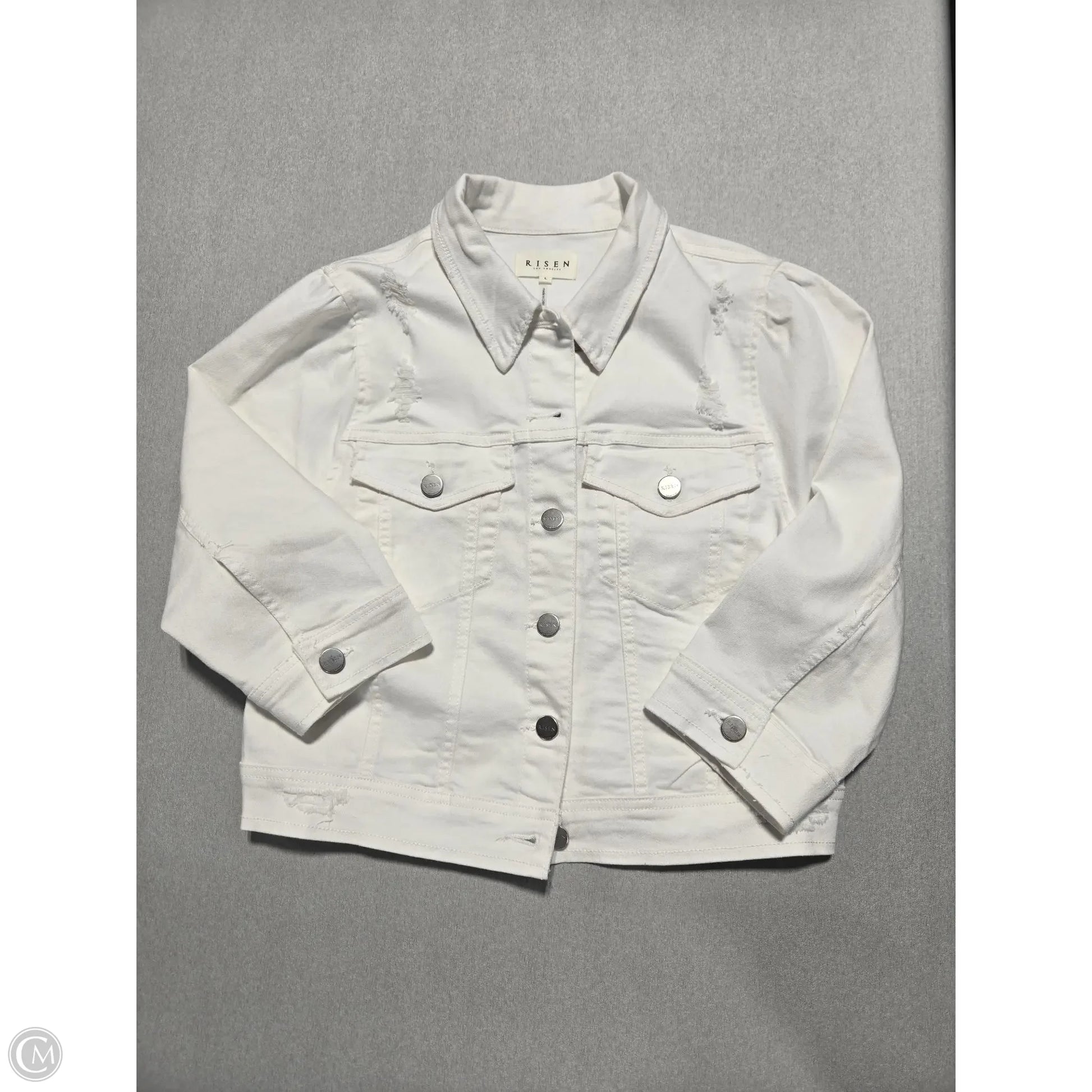 Jacket Denim By Risen In White Denim, Size: L