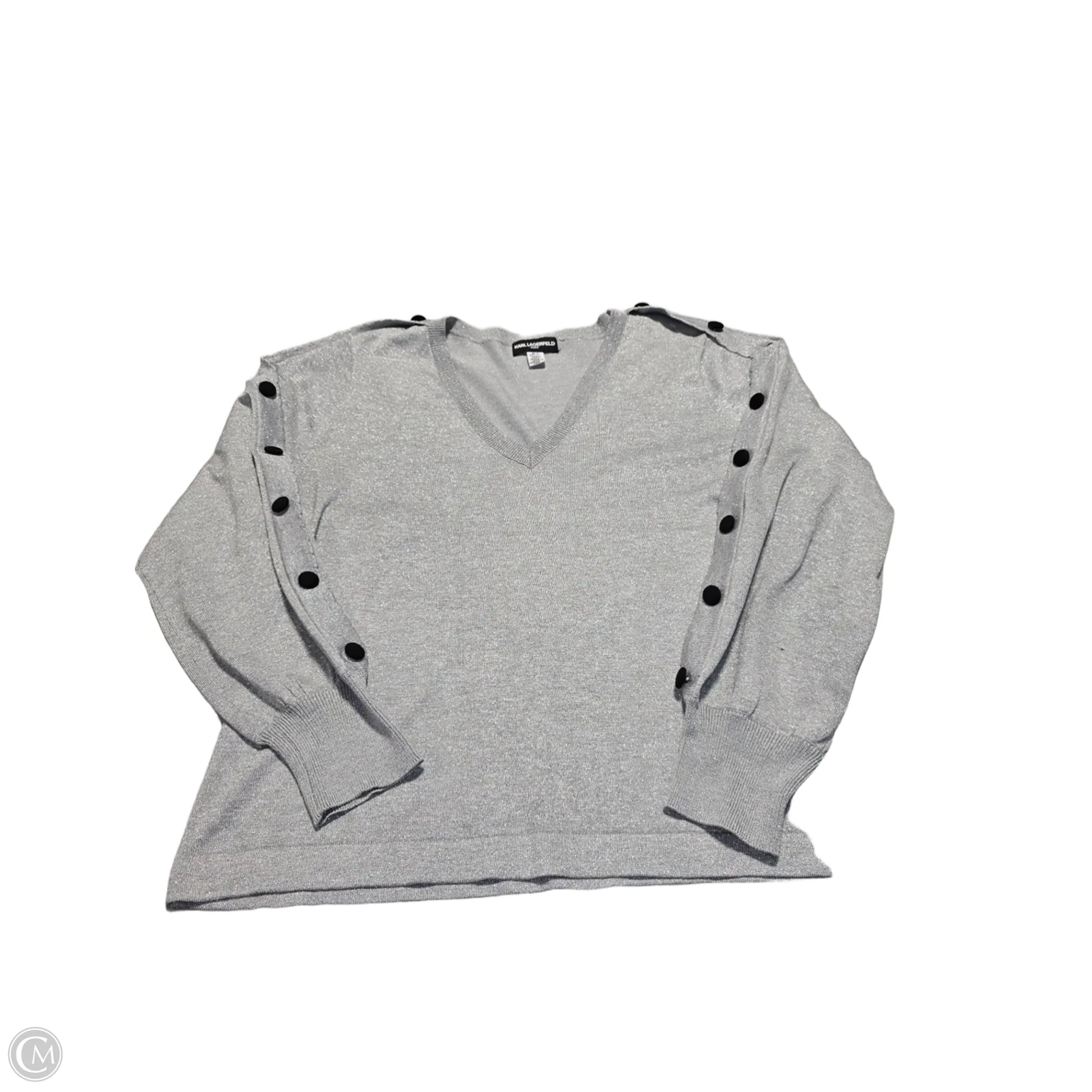 Sweater Designer By Karl Lagerfeld In Silver, Size: Xl