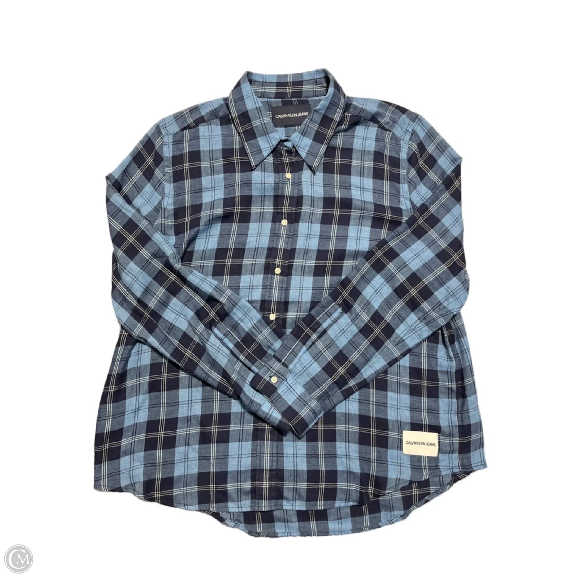 Top Long Sleeve By Calvin Klein In Plaid Pattern, Size: Xl