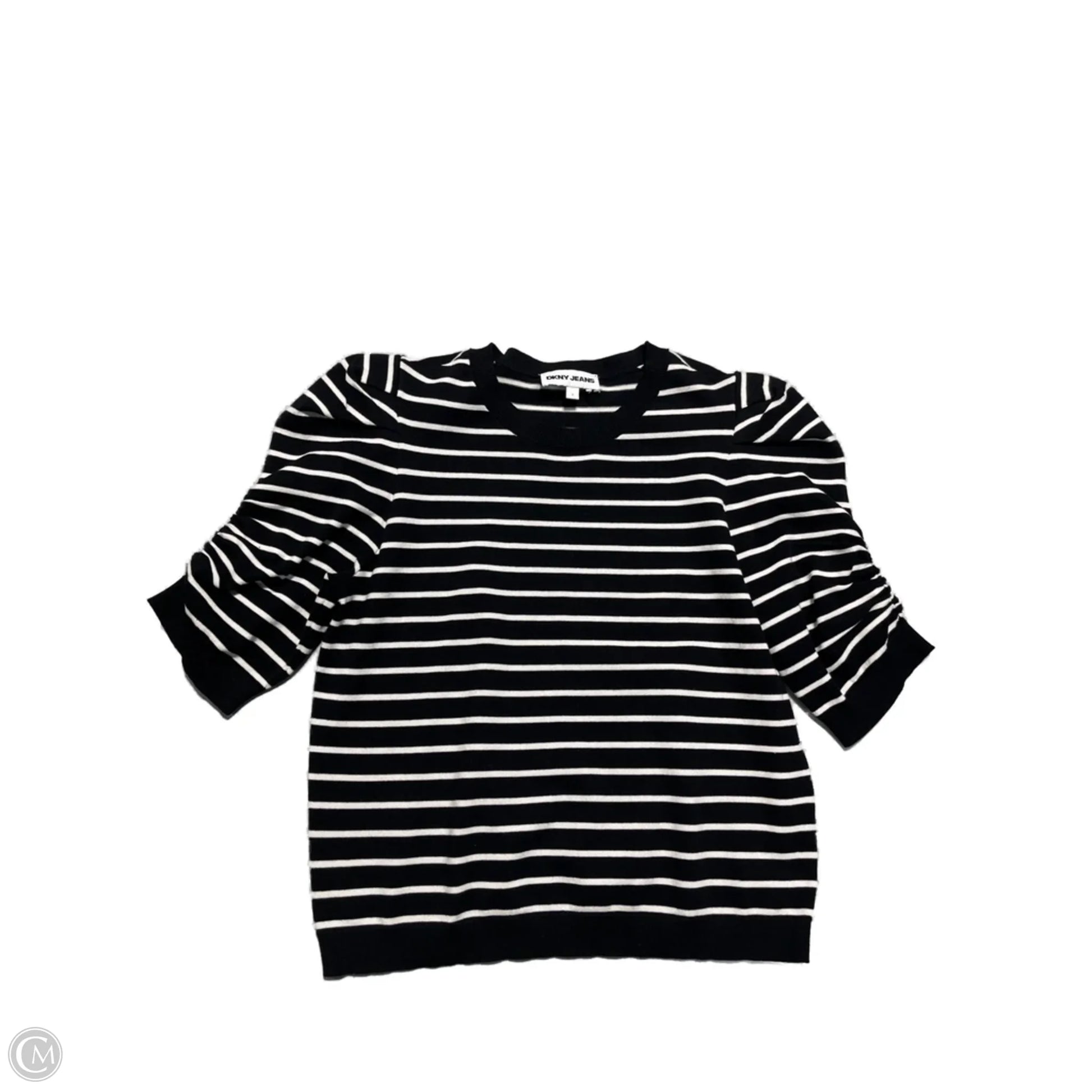 Top Short Sleeve By Dkny In Striped Pattern, Size: L